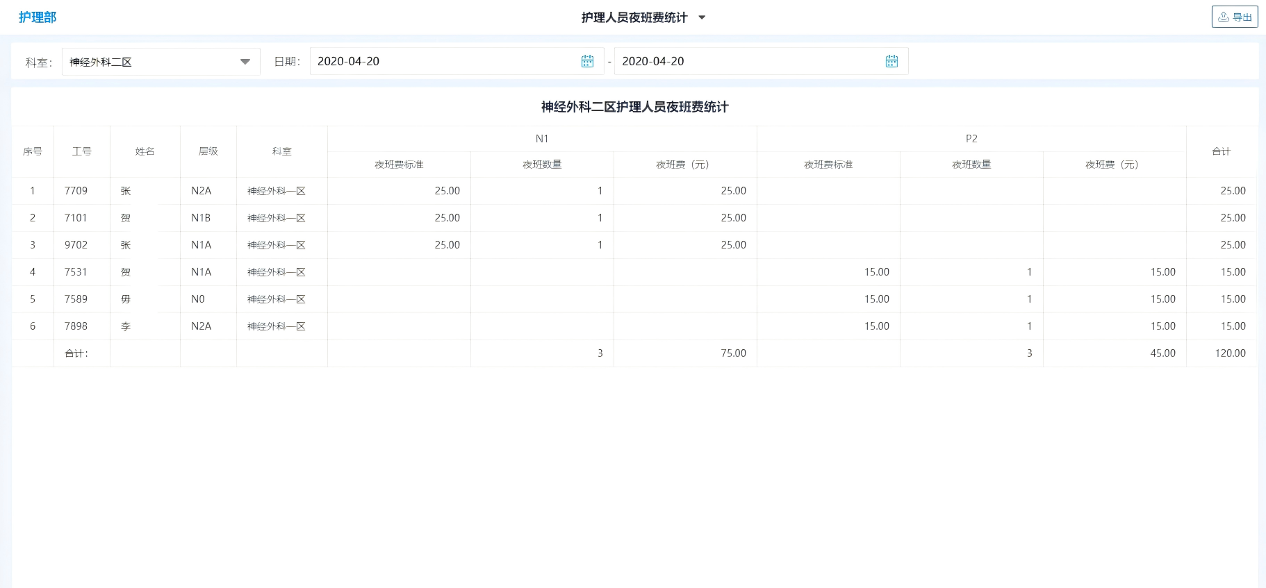 自动生成夜班费核算表与护患比数据,且历史护患比曲线实时呈现,既减轻护士长工作量,又为敏感指标监管提供精准数据支撑。