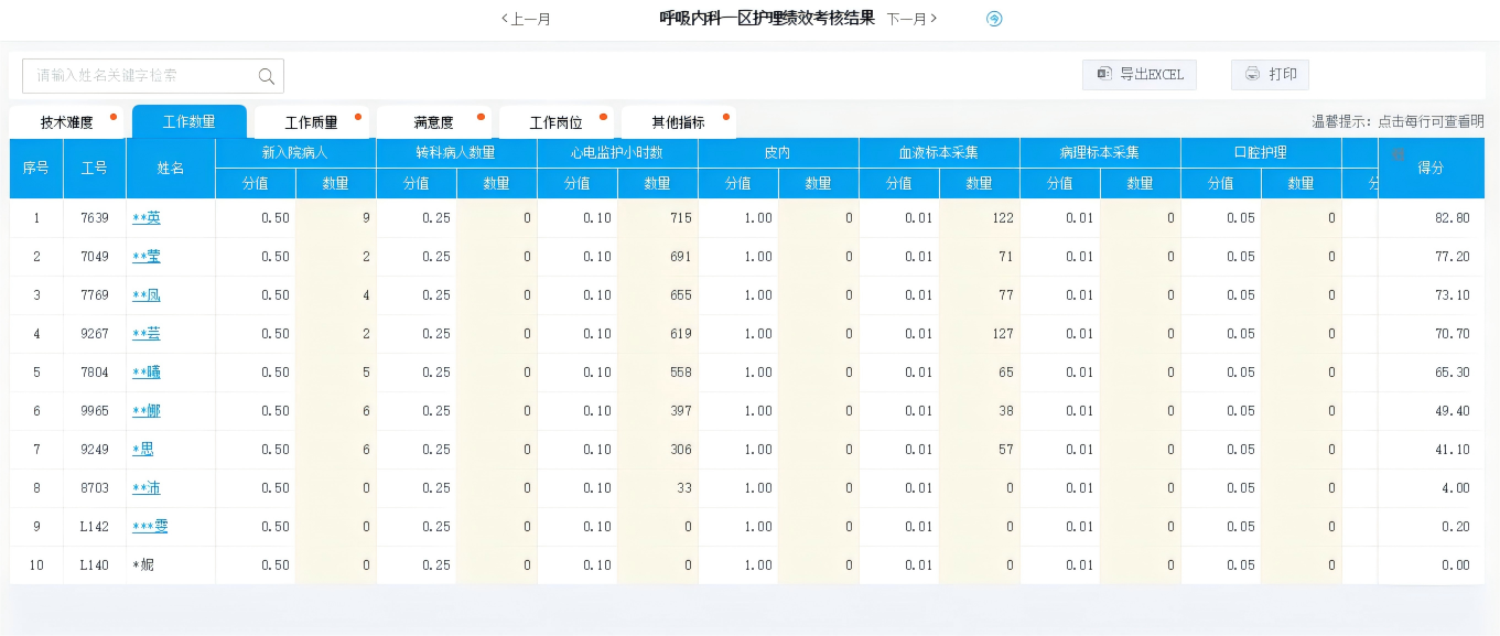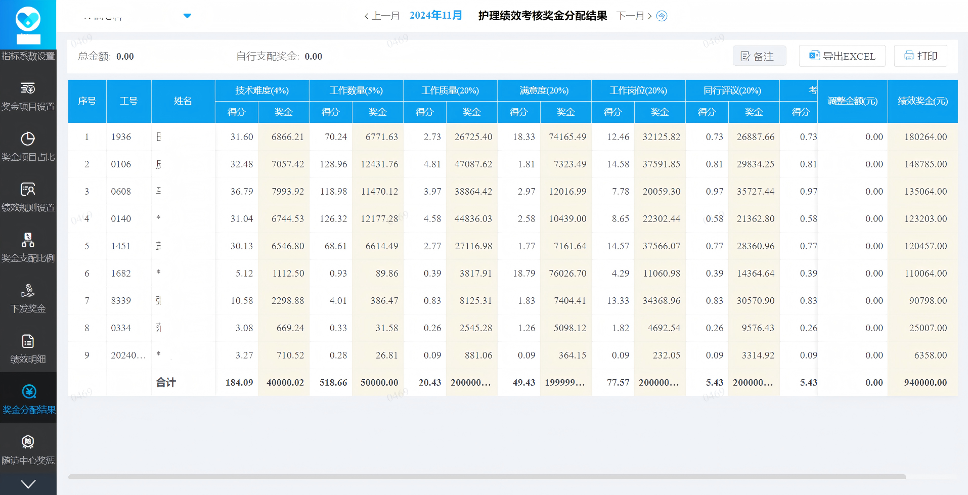 通过将绩效考核结果与既定的奖金分配方案直接关联,一键自动生成清晰、公正的个人奖金明细表,实现了“优绩优酬”的精准落地,支撑护理部或科室进行高效的二次分配。