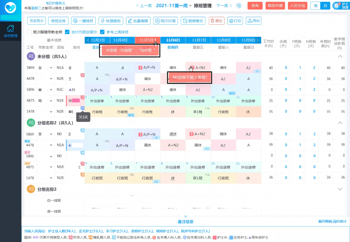 排班是护理管理中最耗时的工作之一。传统手工排班需要护士长在电脑Excel表格中花费数小时,反复调整、核验,仍难以避免班次冲突、人力不足或过剩等问题。夜班费计算、护患比统计等后续工作更是繁琐复杂。