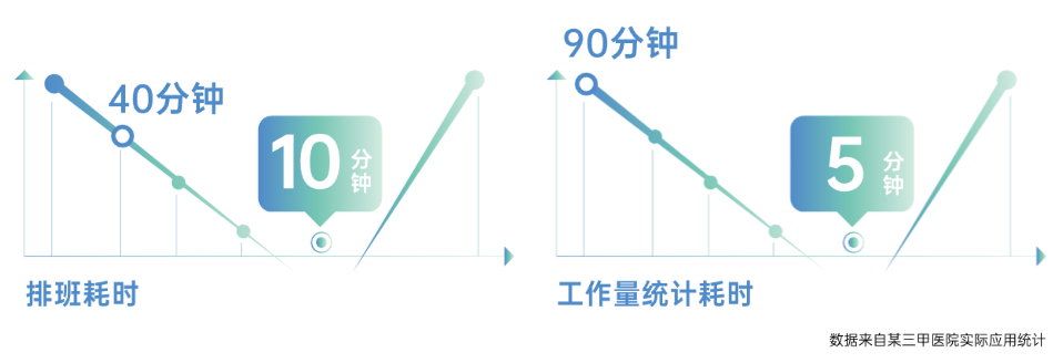 护加加人事管理解决方案在某三甲医院应用后数据显示,护士长排班平均耗时由40分钟下降至10分钟,护理人员工作量统计平均耗时由90分钟降至5分钟,护理人员对管理工作的满意度从70%提升至90%。