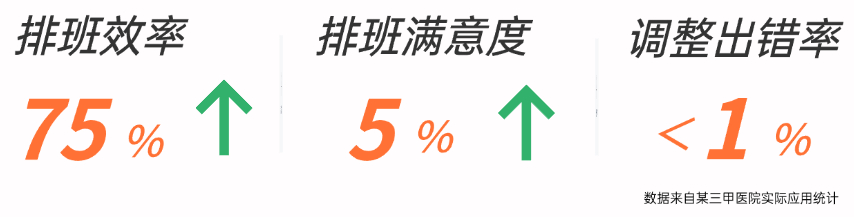 01 全流程效率倍增 护士长排班从数小时的手动编排、反复核验、逐项调整中彻底解放,分钟级搞定排班管理。 02 提升排班灵活性 支持快速调班、替班、批量调整,适应突发人力变动。 03 降低操作错误率 基于智能规则校验引擎,冲突主动预警与提示,调整时自动处理跨病区、跨班种的复制、剪切与粘贴,避免人为失误导致的排班冲突或遗漏。 04 管理模式革新 支持手机端进行排班与调整,并能快速响应护士的个性化需求,极大提升了管理灵活性与团队满意度。 经过多家医院应用实测,护加加排班管理带来的效率提升清晰可见。
