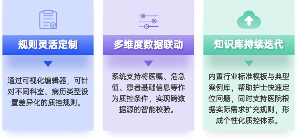推动质控模式从事后抽查向“事前预防、事中控制”变革,实现主动预防。通过内置并可自定义的庞大规则库,将各类标准固化于流程,确保全院护理文书的标准化与同质化。 保障安全、提升效率、深化内涵 通过多源数据集成与实时风险警示,在护理文书操作关键节点直接拦截提醒,筑牢患者安全防线。其智能提醒与“边写边检”功能显著提升记录效率,将护士从繁琐检查修改中解放。更通过AI深度核验文书逻辑与合理性,深化专业内涵。 驱动护理病历质控持续跃迁 构建了可动态生长的“专科质控知识库”,实现“千科千面”的精准管控。其创新性采用“知识+数据+推理”协同模式,将AI语义分析与临床严谨要求深度融合,验证了AI在护理文书场景的有效落地,为护理智能化发展树立了可行范式。 构建高质量智慧护理生态系统 对医院,它是提升安全等级和加速数字化转型的有力工具;对管理者,是实现过程可视、决策有据的强大抓手;对护士,是减负增效、防范风险的智能伙伴;对患者,则是获得更优质、更安全护理服务的根本保障。 护加加护理病历质控解决方案不仅是一套工具,更是医院提升护理质量、防范医疗风险的战略伙伴。通过过程质控与终末质控的有机结合,助力医院实现文书书写的规范化、标准化,让护士回归临床、让管理有的放矢。在政策与技术的双轮驱动下,护加加将持续深耕医疗质量领域,为构建安全、高效的医疗服务体系贡献力量。