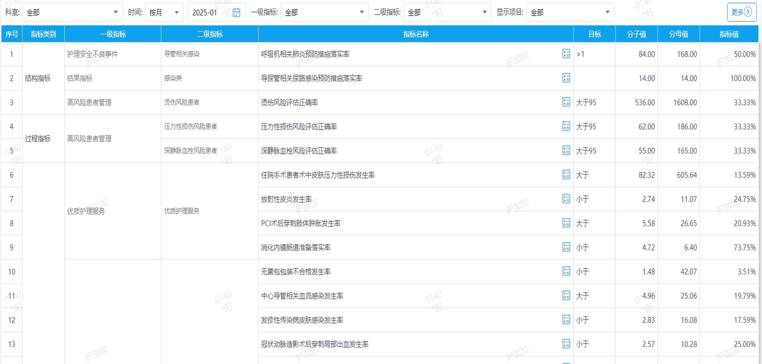 专科核心指标无适配工具:手术室的手术配合合格率、儿科的静脉穿刺成功率等专科核心指标,因缺乏针对性监测工具,通用指标体系无法精准捕捉专科护理重点,难以体现不同科室的临床服务特色与质量核心。